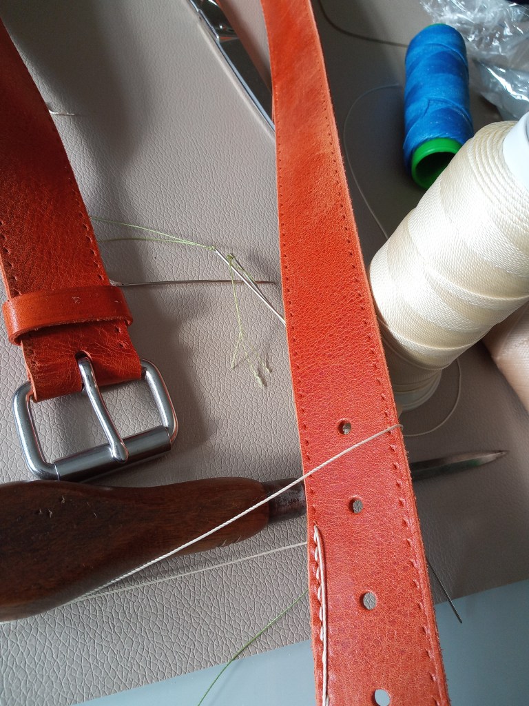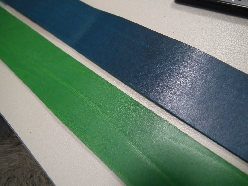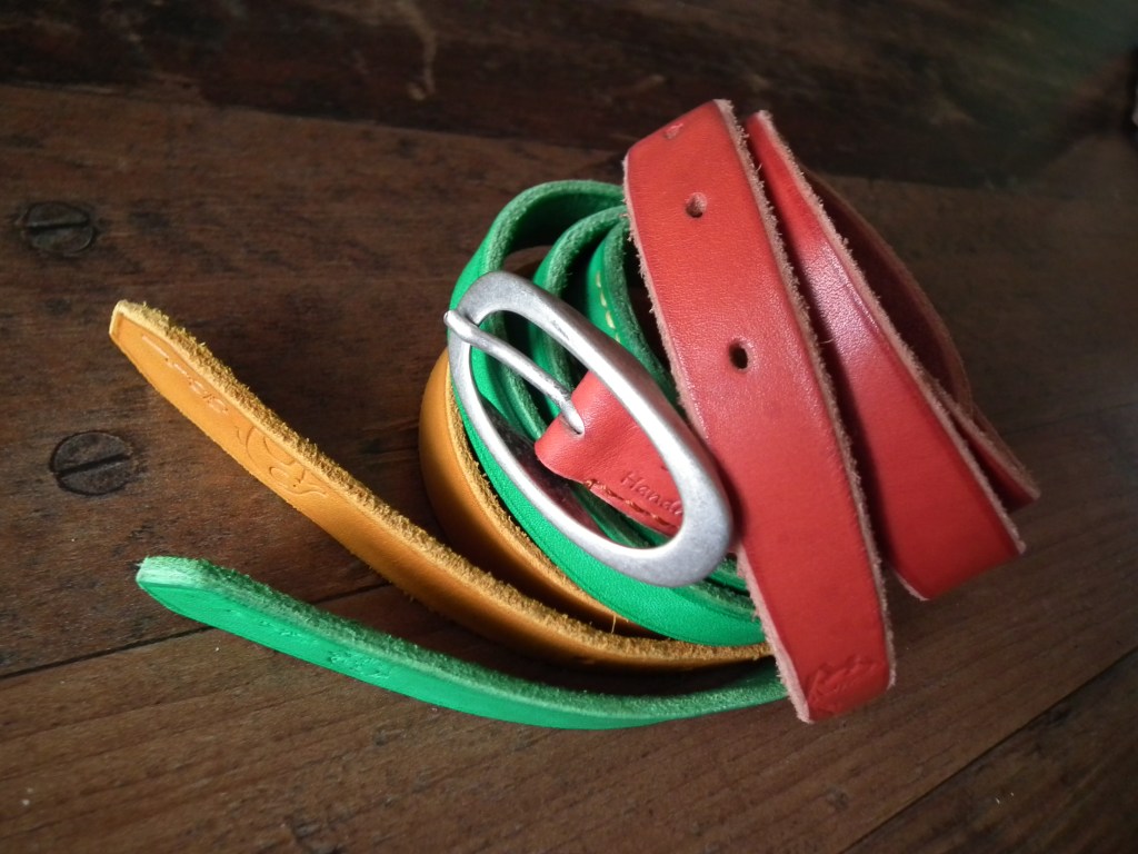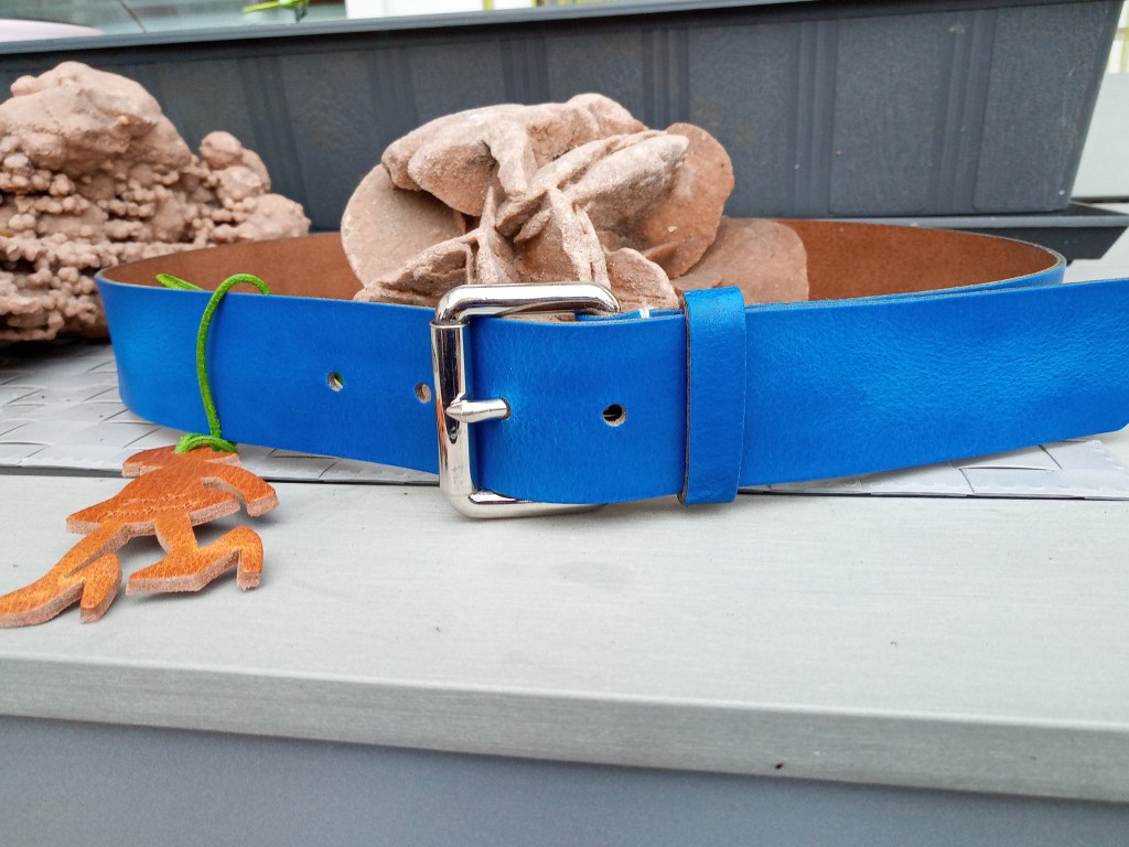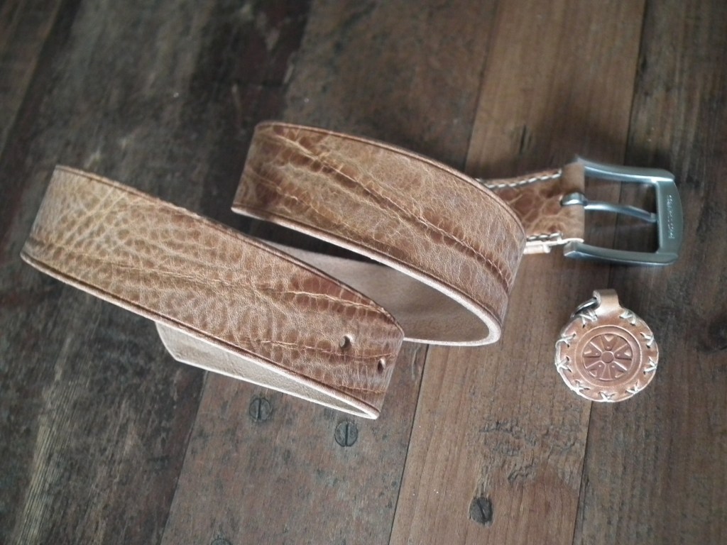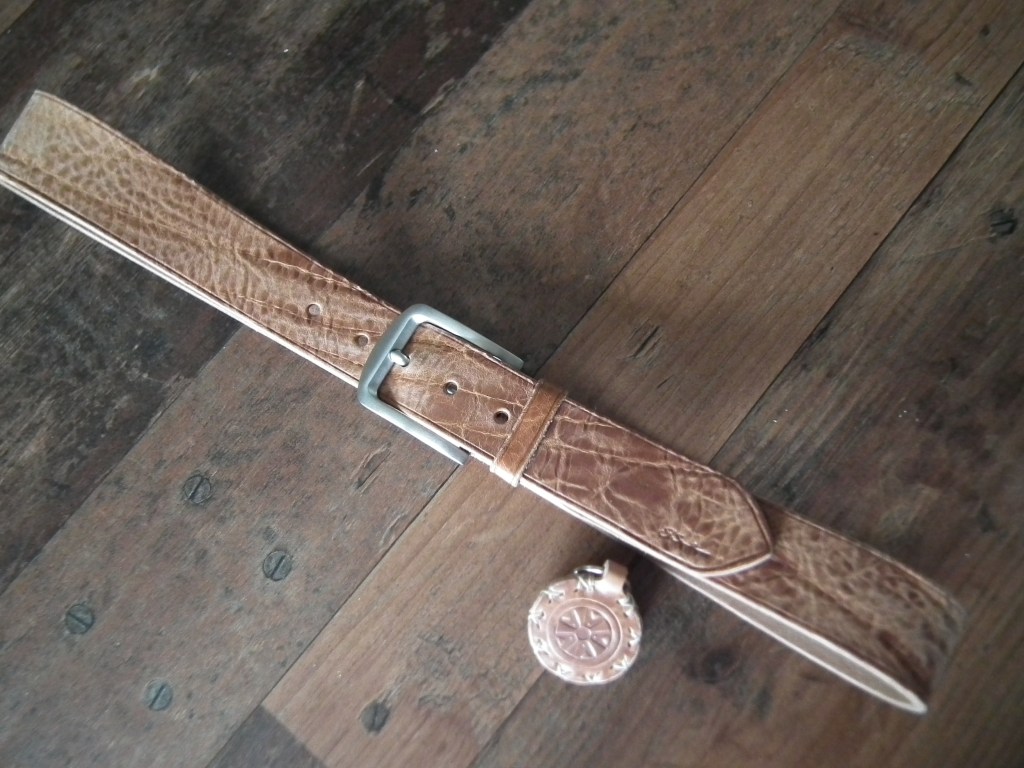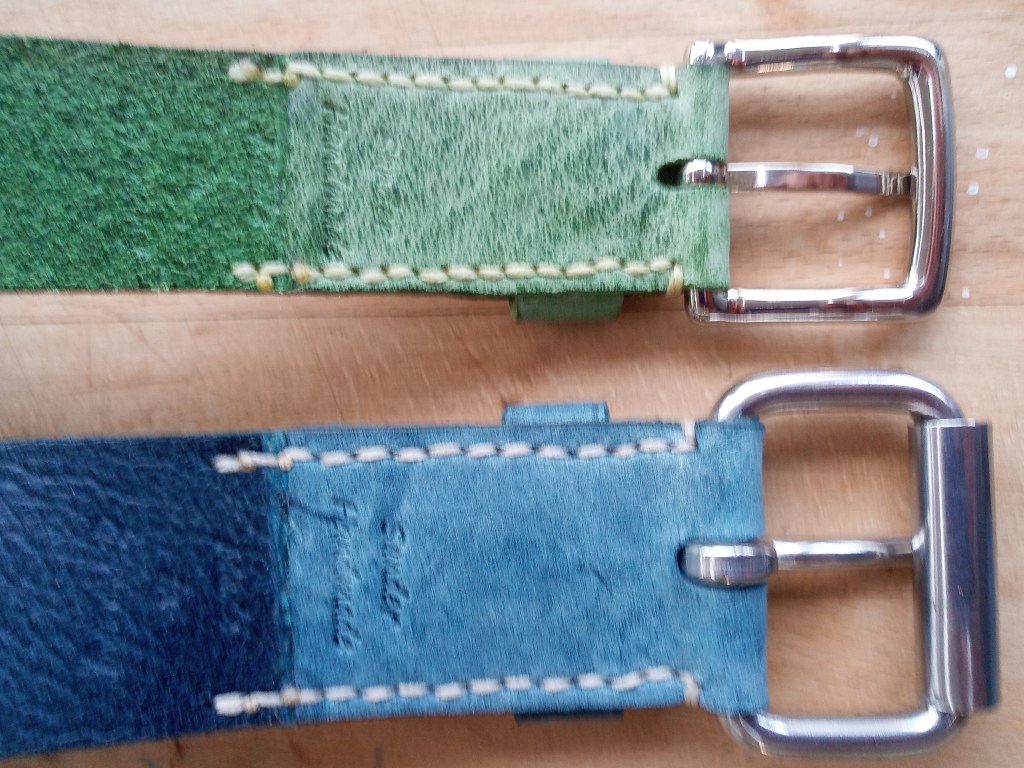 Qualitätsgürtel werden meist aus dem Rinderhals gemacht, einige auch aus dem Rücken. Gürtel aus Exotenleder kann mit Spaltleder vernähen. Zusammengeklebte mit Pappe, Industrieschaum und Kunststoff „gepunchte“ Gürtel findest Du im Handwerk nicht.